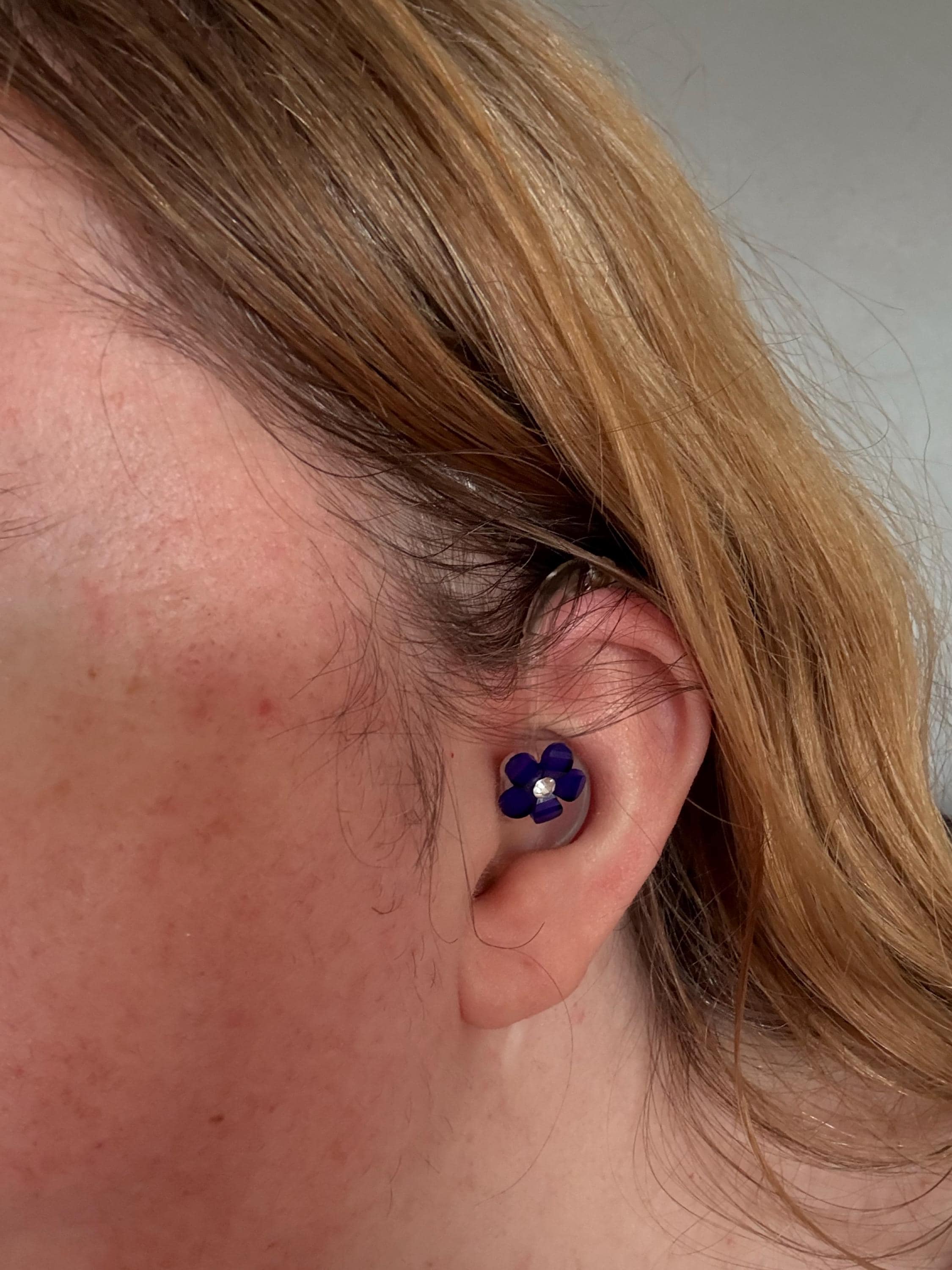 These Petite Jeweled Flower hearing aid Tube Trinkets are great! Wear 1 or 2 on each tube! The small flowers are roughly 9 mm while the large are 5/8 of an inch 💕💕💕