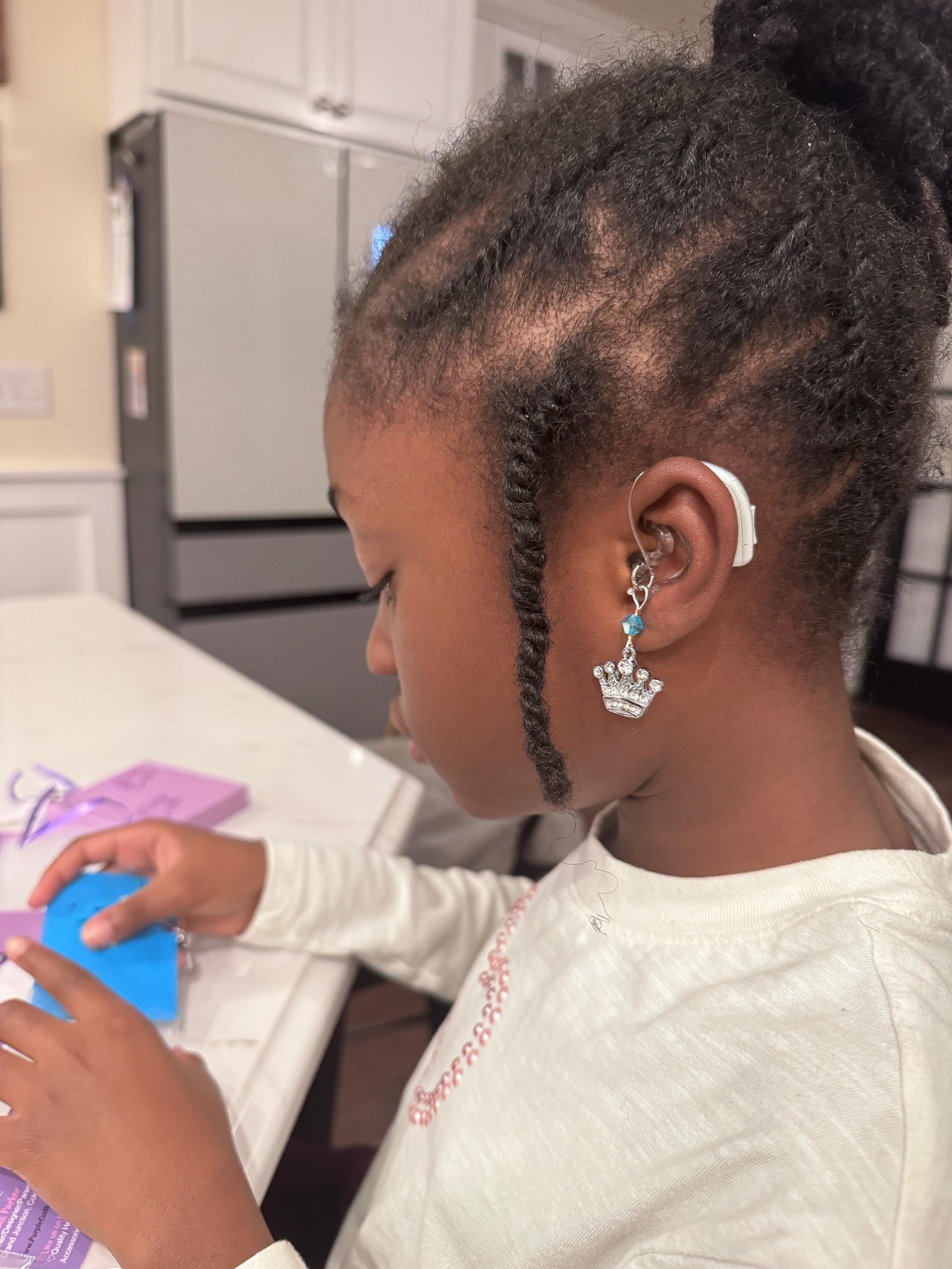 Purple Cat Hearing accessories fit all types of hearing aids, hang safely from cochlear implant cords, and are lightweight! Available as a pair of hearing aid charms, a single charm, earrings, matching mother daughter set, or a single charm/earring combo. Price shown is for one single charm. Be sure to check the correct option when ordering.